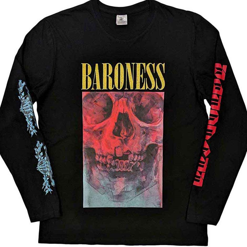 An official licensed Baroness Long Sleeve T-Shirt featuring the Skull design motif. Soft-style cotton, front & sleeve print