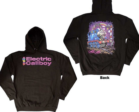 An official licensed Electric Callboy Pullover Hoodie featuring the Choo Choo design motif. 100% Cotton, front & back print.