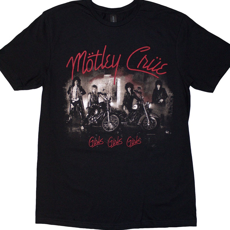 An official licensed Motley Crue T-Shirt featuring the Band Bike Vintage design motif. Soft-Style Cotton. Front print only