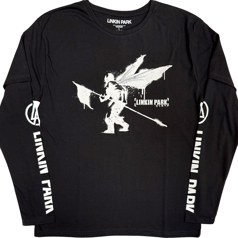 An official licensed Linkin Park Layered Long Sleeve T-Shirt featuring the Street Soldier design motif. Layered sleeve detailing with contrasting collar. Soft-style cotton, front & sleeve print.