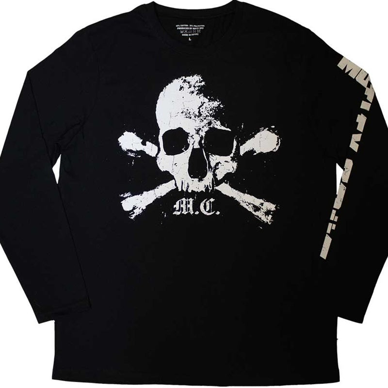 An official licensed Motley Crue Long Sleeve T-Shirt featuring the Orbit Skull design motif. Soft style cotton, front & sleeve print